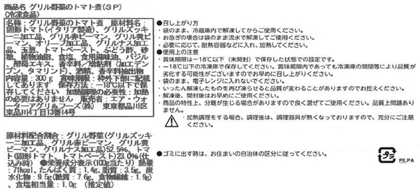 [20袋]エア・ウォーターアグリ&フーズ グリル野菜のトマト煮 300g | グリルしたズッキーニ・赤・黄ピーマン・ナスをトマト仕立てのソースで仕上げました。