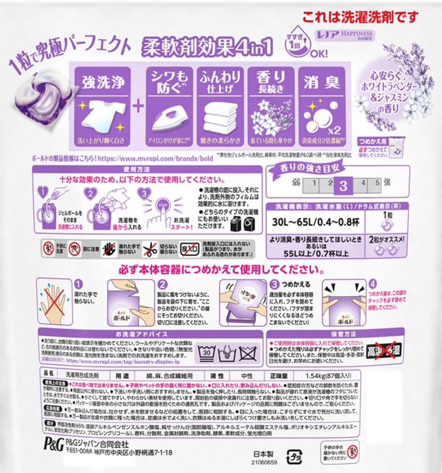 - ボールド 洗濯洗剤 ジェルボール 4in1 ホワイトラベンダー&ジャスミン つめかえ 超メガジャンボ 87個入