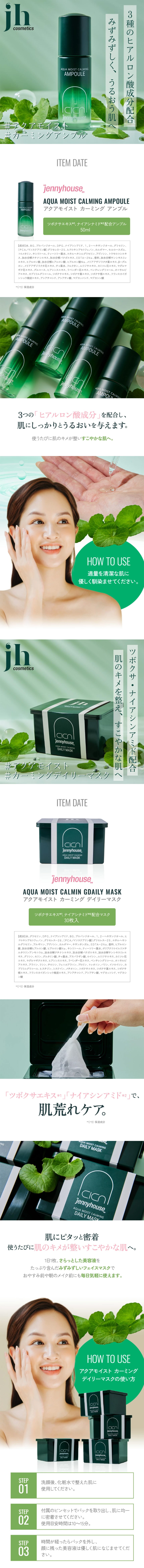 - ジェニーハウス アクア モイスト カーミング アンプル 50ml / デイリー マスク 30枚入