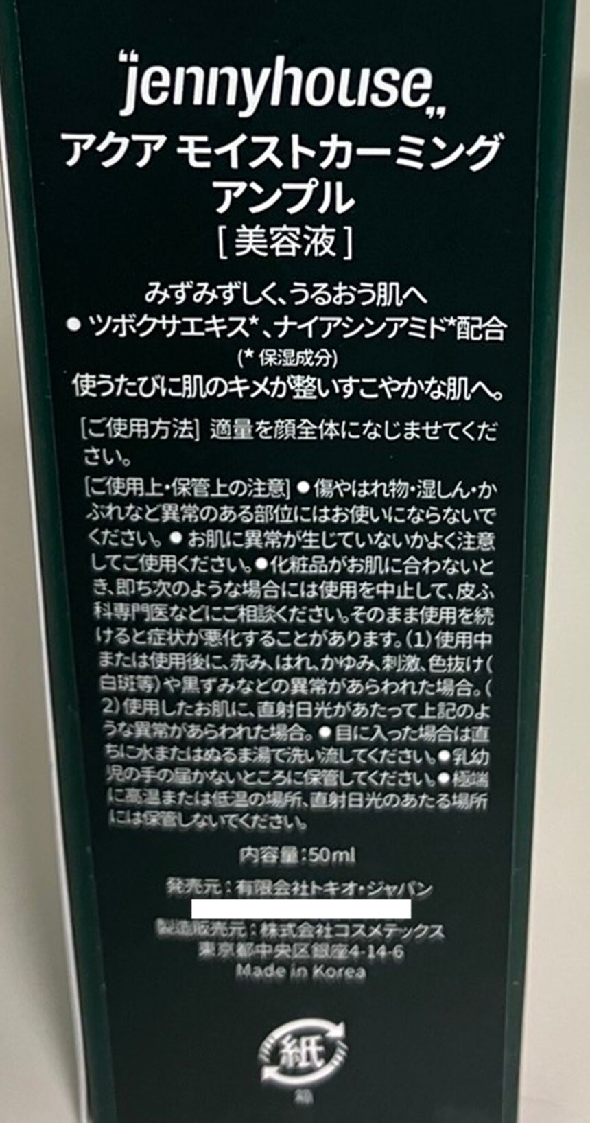 - ・ジェニーハウス アクア モイスト カーミング アンプル 50ml×6個