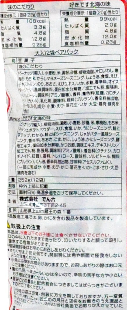 でん六の豆菓子が好きで、お安く買えて喜んでいます。味は間違いなしです!