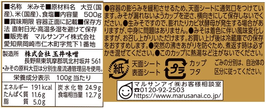 100%国産素材の「大豆」「米」「塩」で、信州の蔵元玉井味噌にて「マルサン純正こうじみそ」の伝統製法を継承して仕込みました。