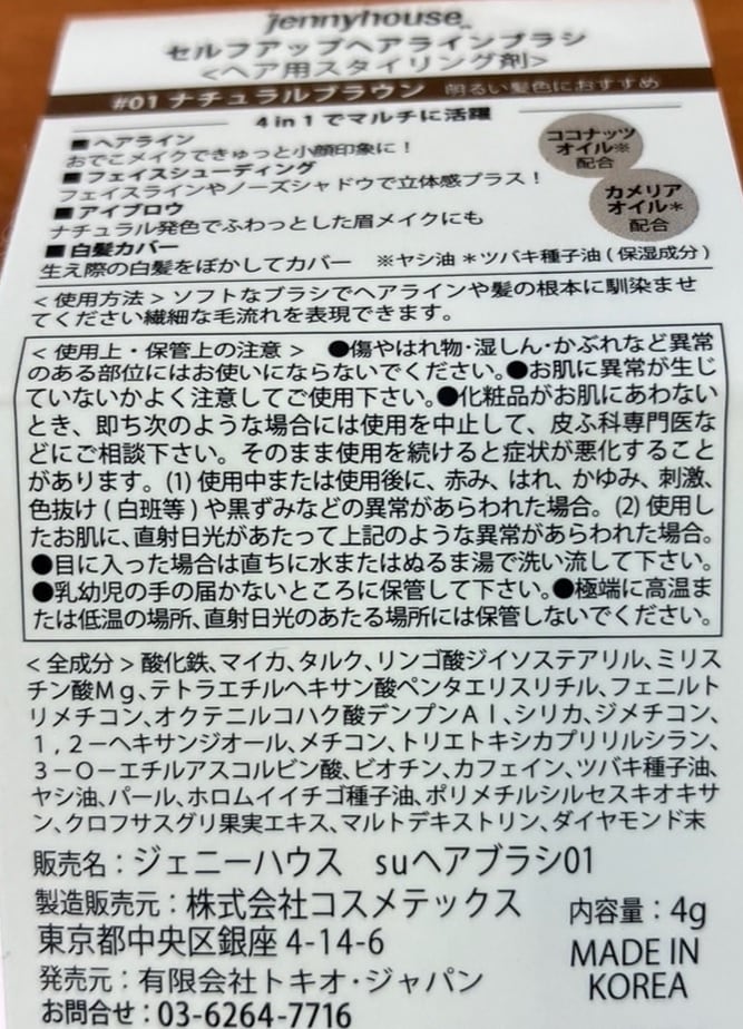 - ジェニーハウス セルフアップヘアラインブラシ 01ナチュラルブラウン 4g ※外装破損あり