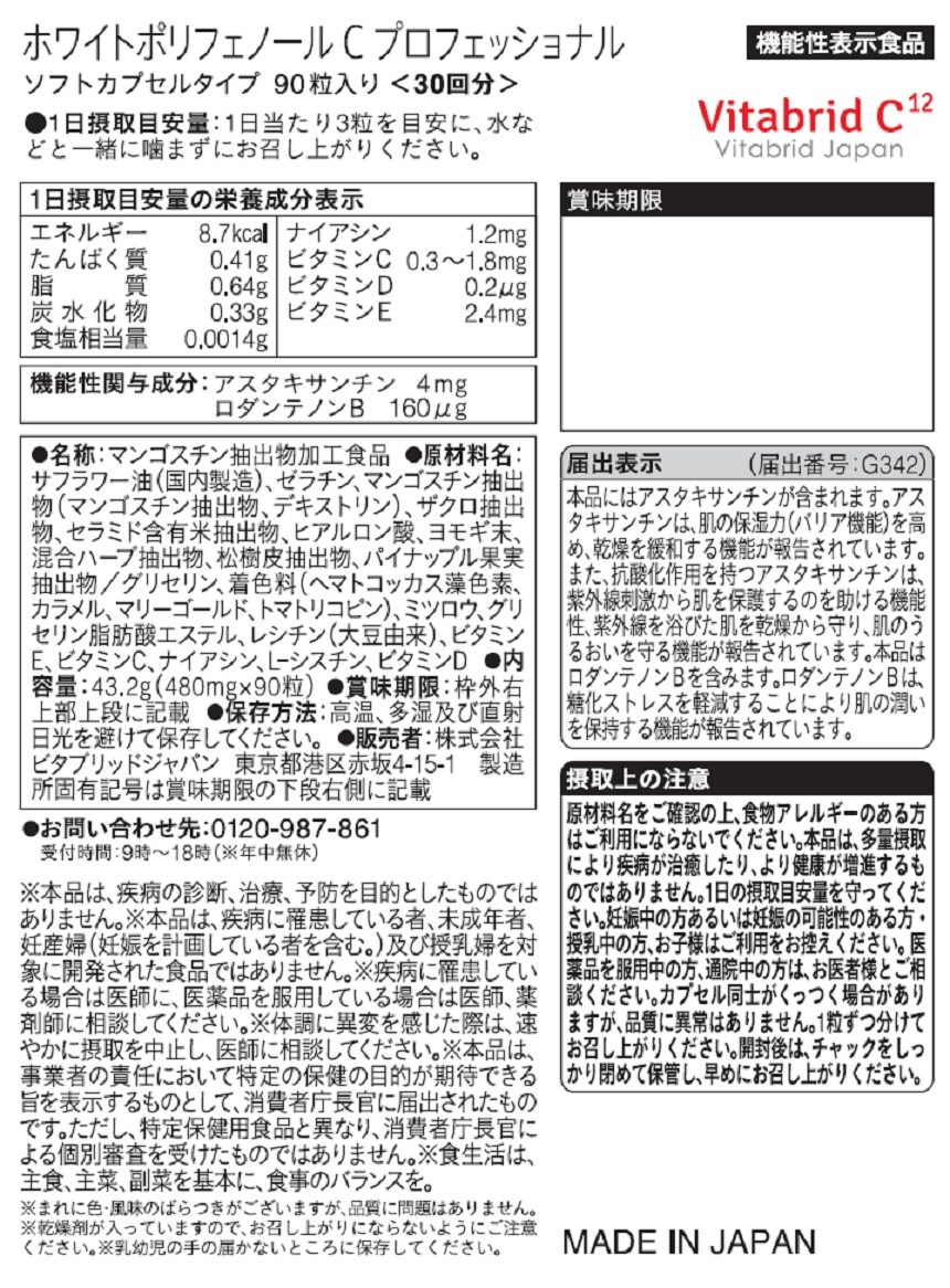 [計120日分]【機能性表示食品】ビタブリッドジャパン ホワイトポリフェノールC プロフェッショナル 30日分×4個 | ワンランク上の大人のための輝きサプリメント