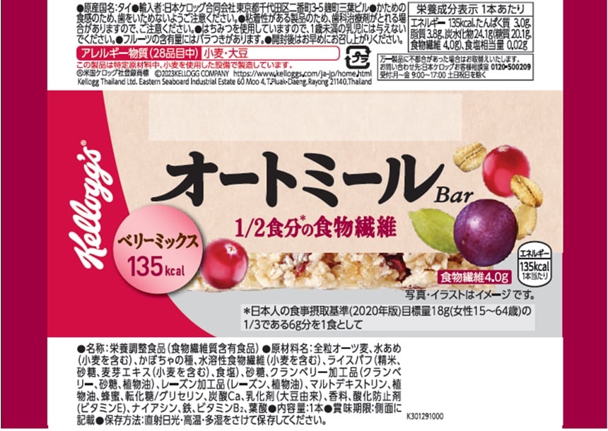 オートミールをベース穀物に100%使用、食物繊維たっぷり1/2食分配合。