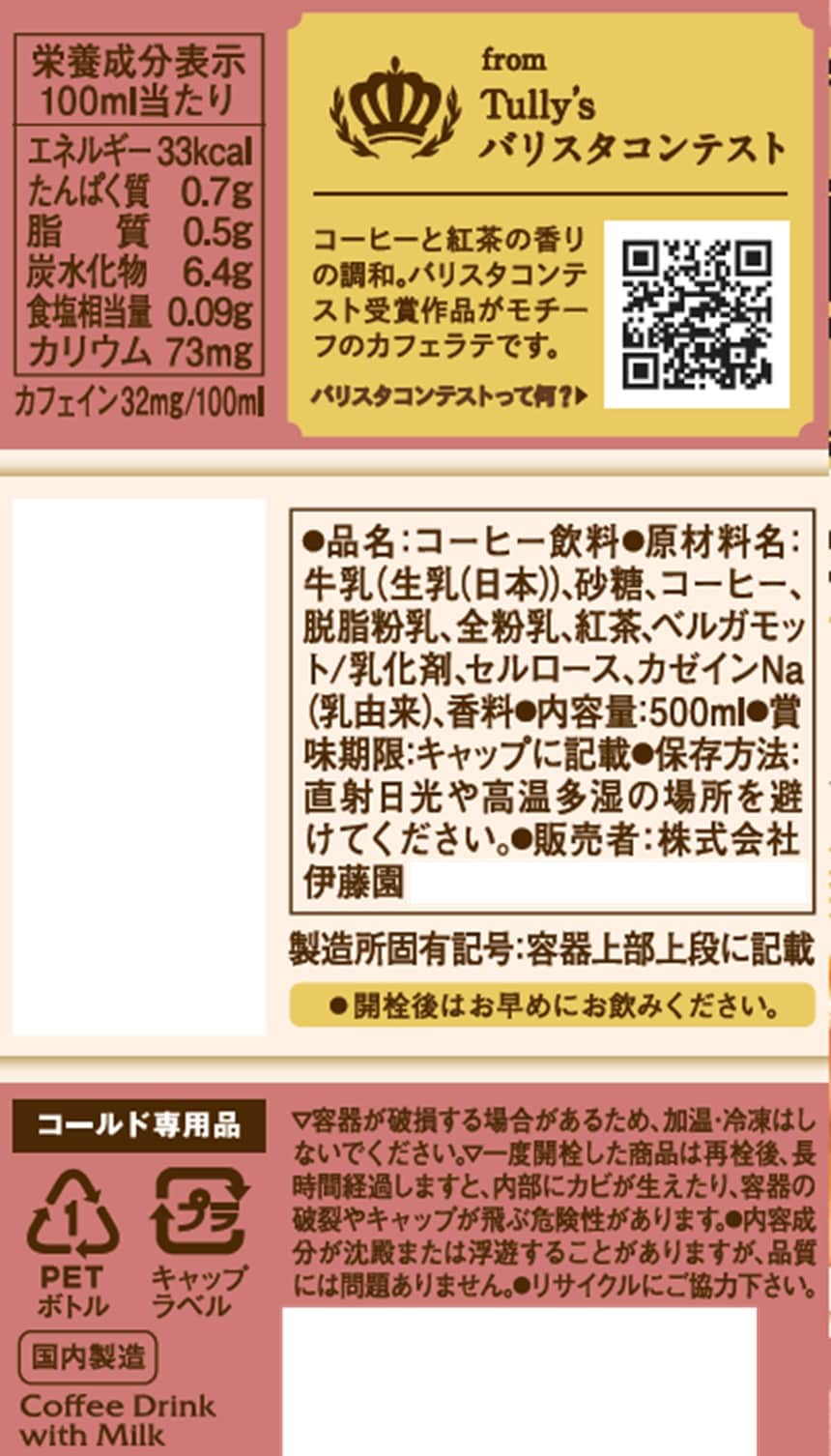 - TULLY’S COFFEE アールグレイ香る CAFFE LATTE PET 500ml
