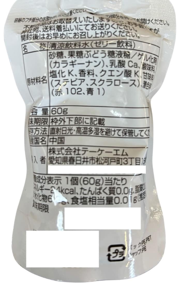 チューブタイプののどごしの良いドリンクゼリー、いつでもどこでも飲めるキャップ付きです。グレープ味。