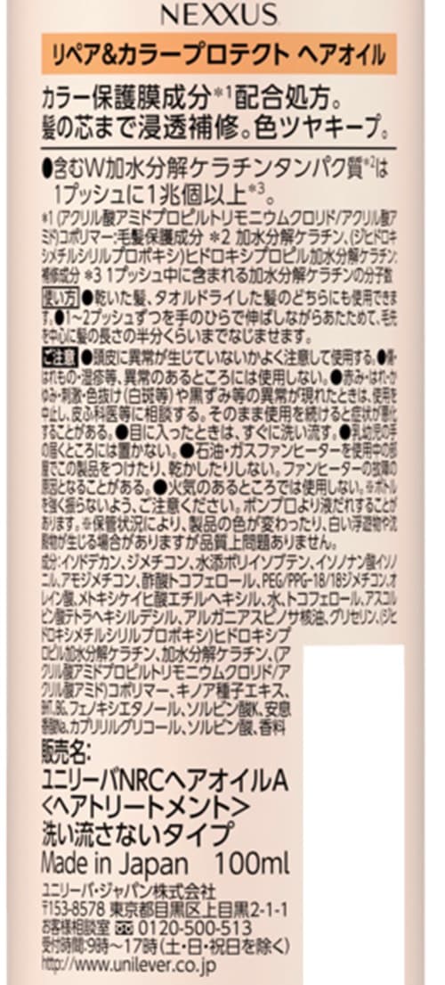 - ネクサス リペアアンドカラープロテクト ヘアオイル 100ml