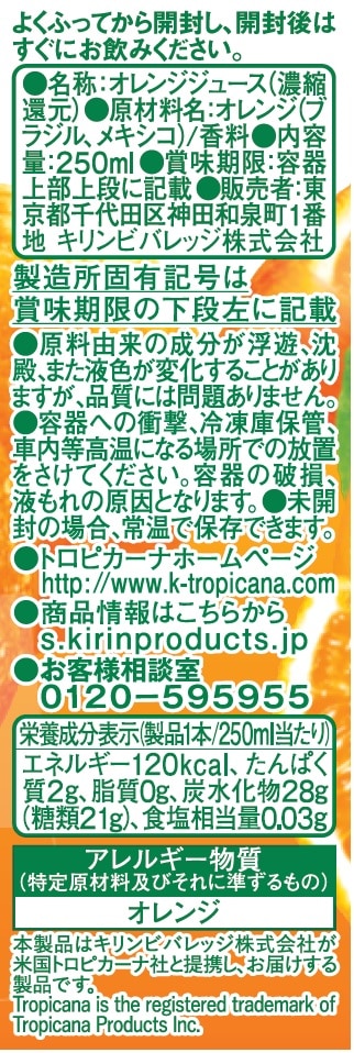 - ・トロピカーナ 100% オレンジ 250ml×24本