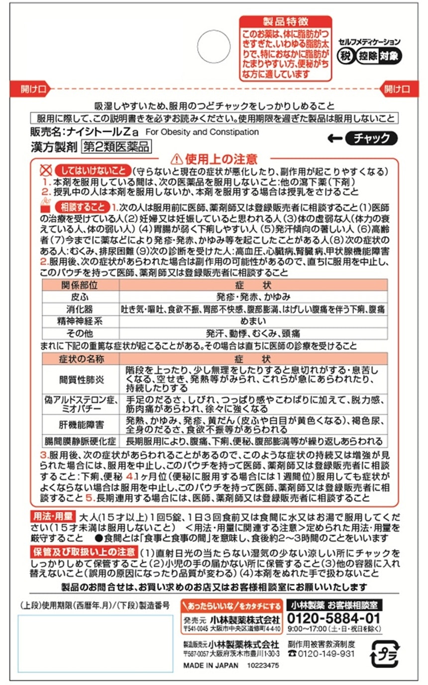 ナイシトールZは18種類の生薬を配合した漢方処方「防風通聖散」を用いた、肥満症を改善するお薬です。