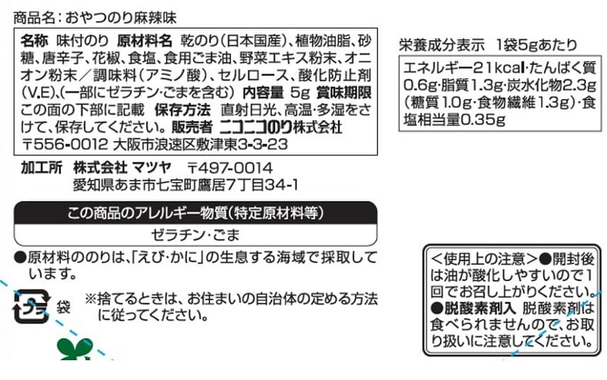 - おやつのり麻辣味 5g