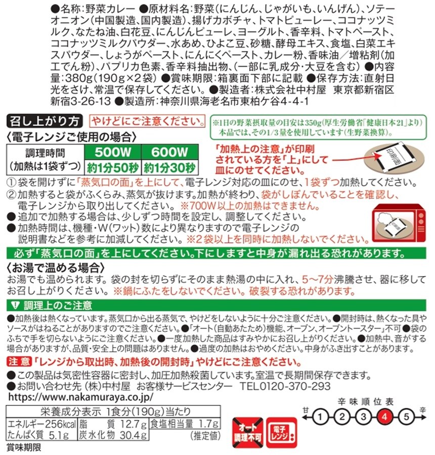 - 新宿中村屋 インドカリー ベジタブル 190g×2食入