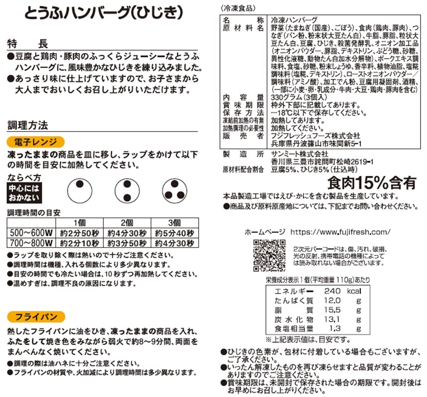 - とうふハンバーグ(ひじき) 330g(3個入)