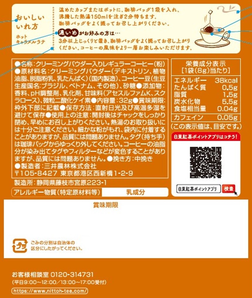 【日東紅茶 ミルクとけだす珈琲バッグ キャラメルラテ】