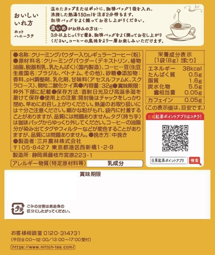 【日東紅茶 ミルクとけだす珈琲バッグ ハニーラテ】