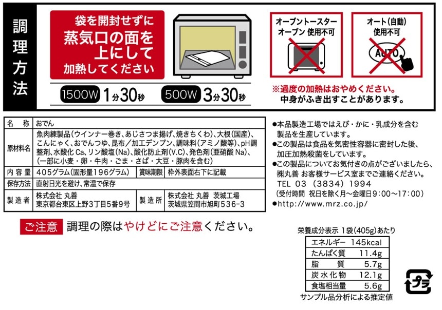 厳選した生大根、食感にこだわったこんにゃく、レトルト加熱調理後に味、食感ともに最適となるよう設計した練り具材は自社工場で製造。