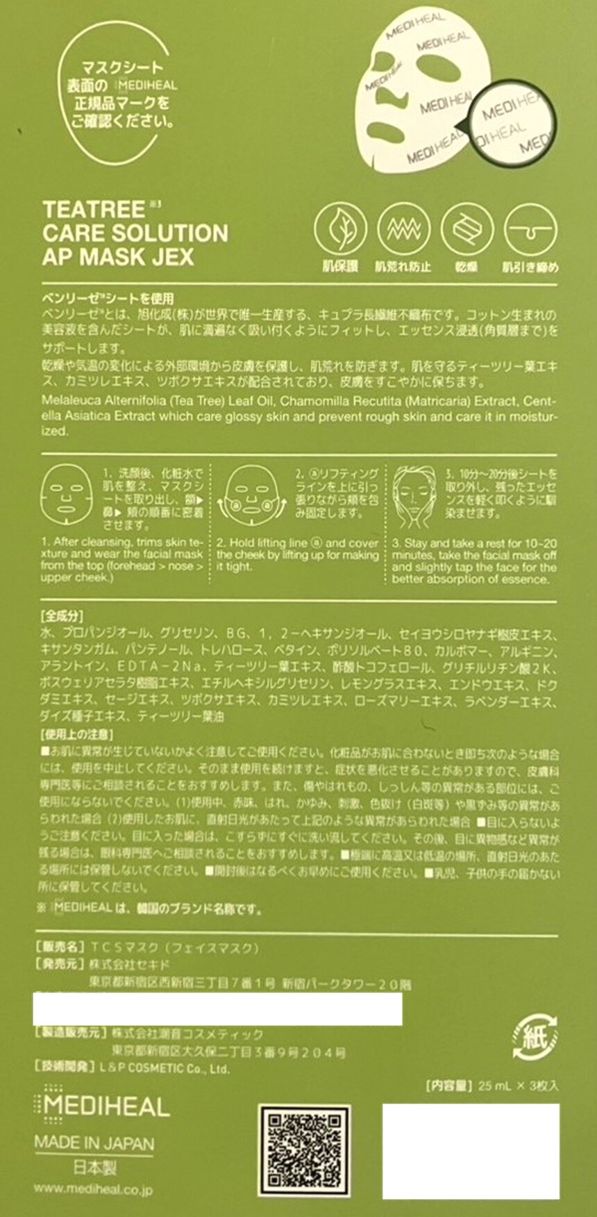 ・メディヒール ティーツリーケアソリューション アンプルマスク JEX 3枚入×2個