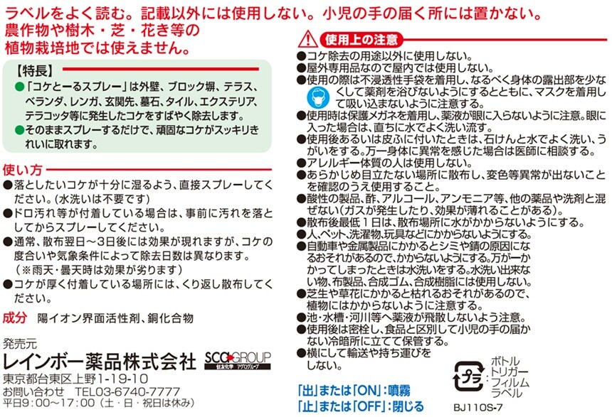 【使用方法】・落としたいコケが十分湿るよう、直接スプレーしてください(水洗いは不要です)。