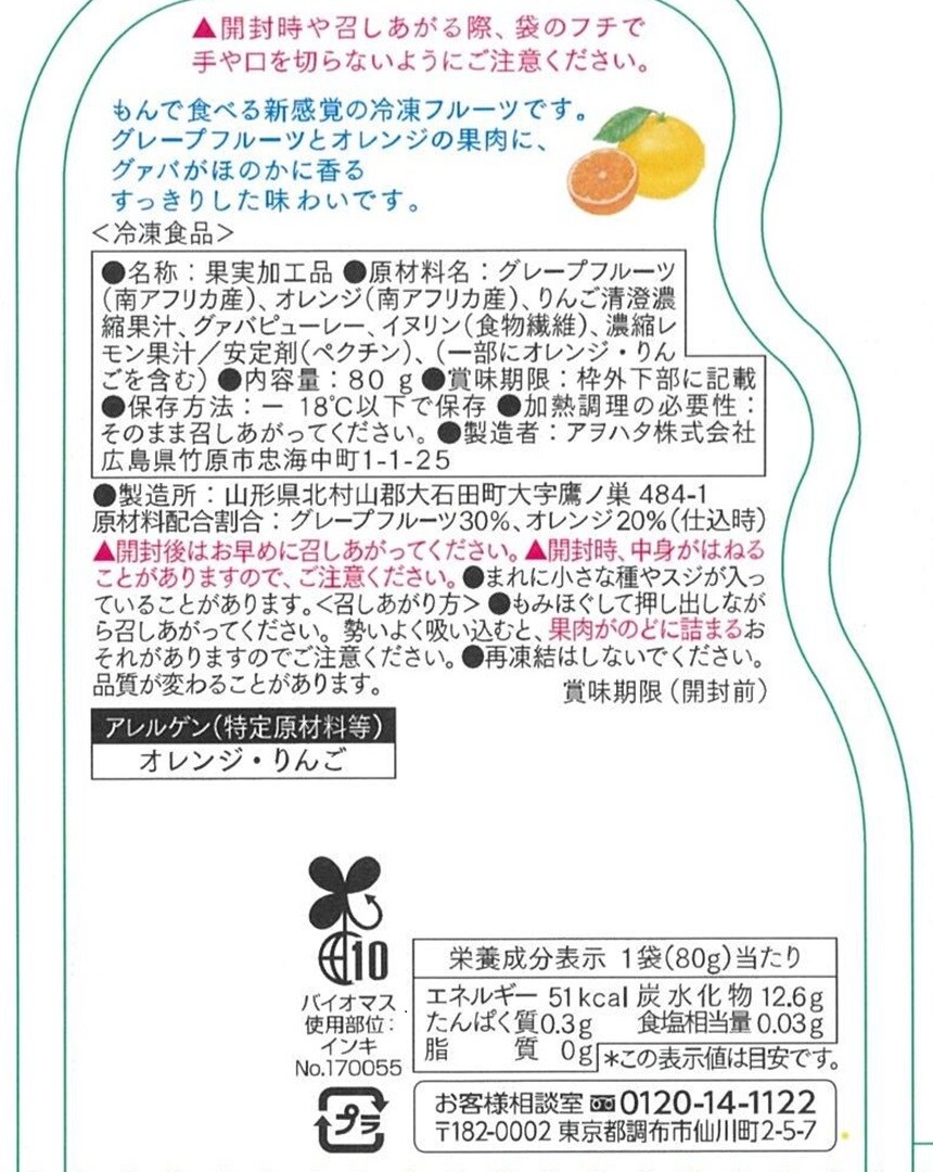 グレープフルーツとオレンジの果肉に、グァバがほのかに香るすっきりした味わいです。