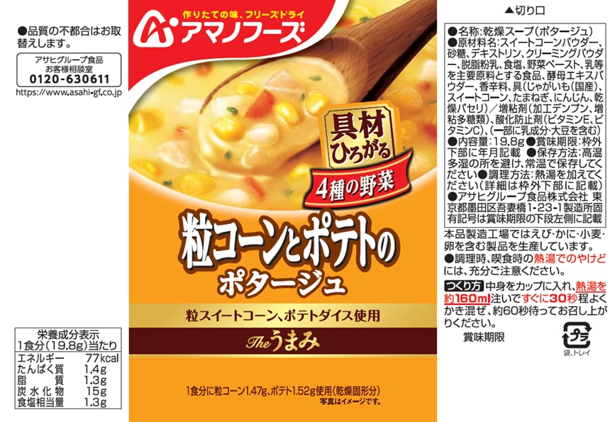 【Theうまみ 粒コーンとポテトのポタージュ】乳、大豆