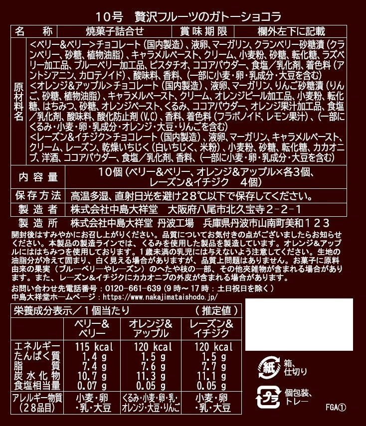 - 贅沢フルーツのガトーショコラ10号 10個入