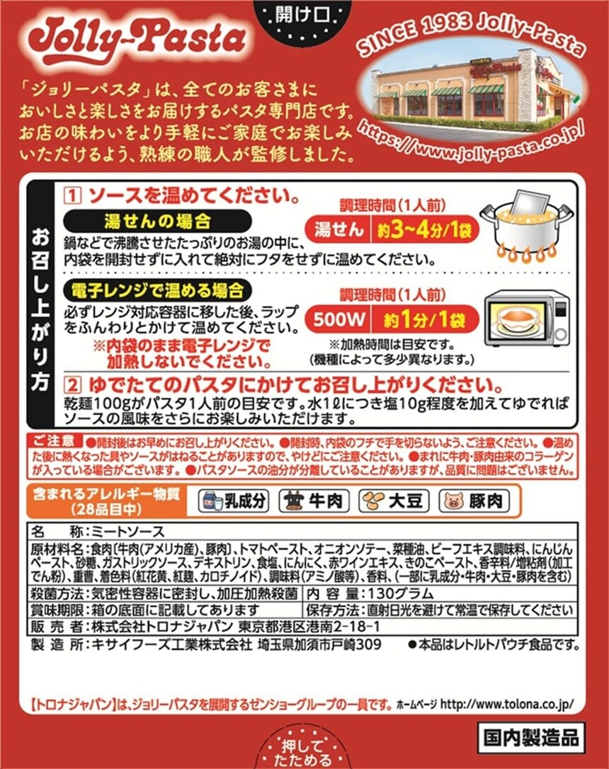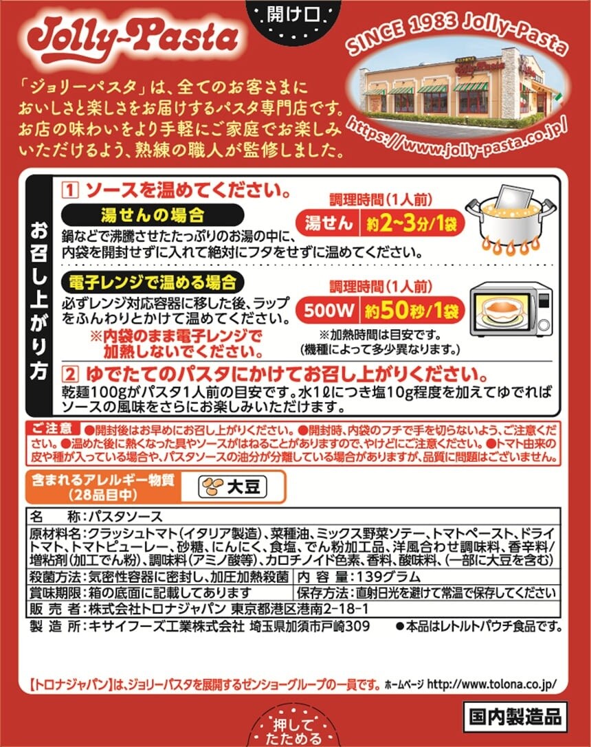- ジョリーパスタ監修 ポモドーロ 139g / ボロネーゼ 130g