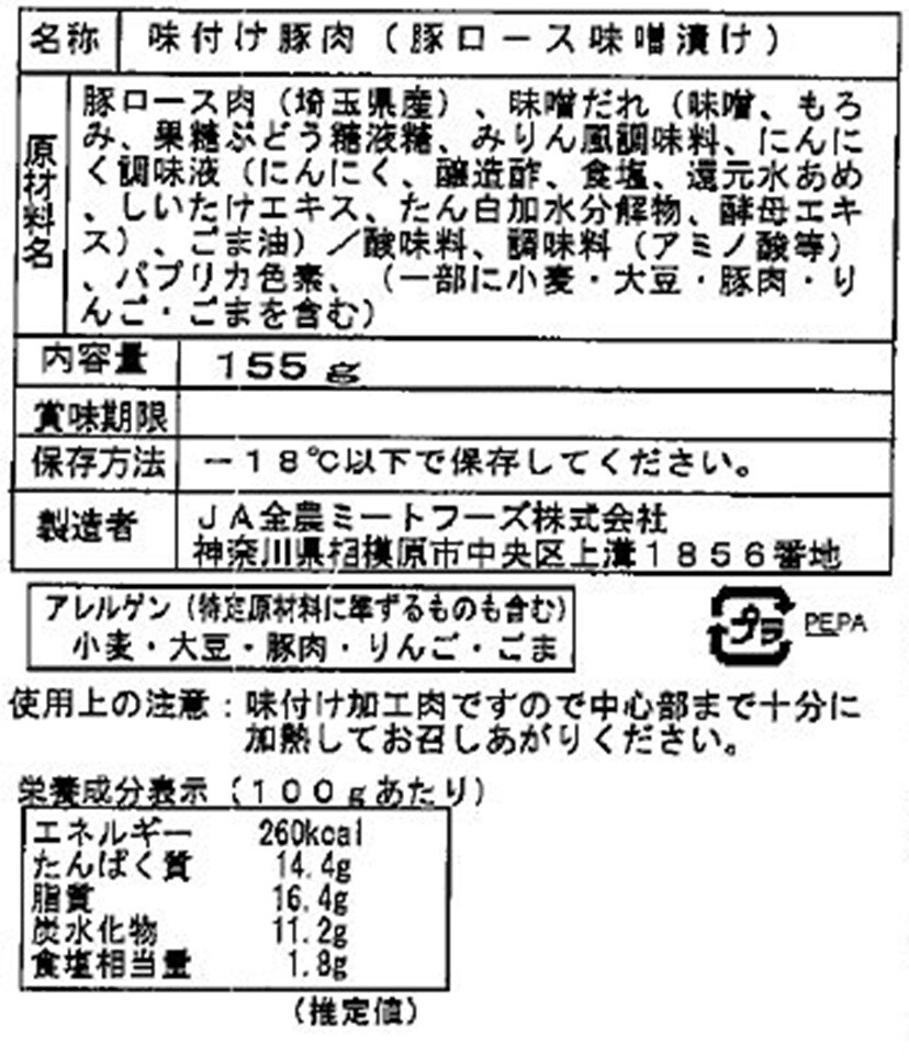 - 彩の国黒豚ロース金山寺味噌漬け 155g×3パック