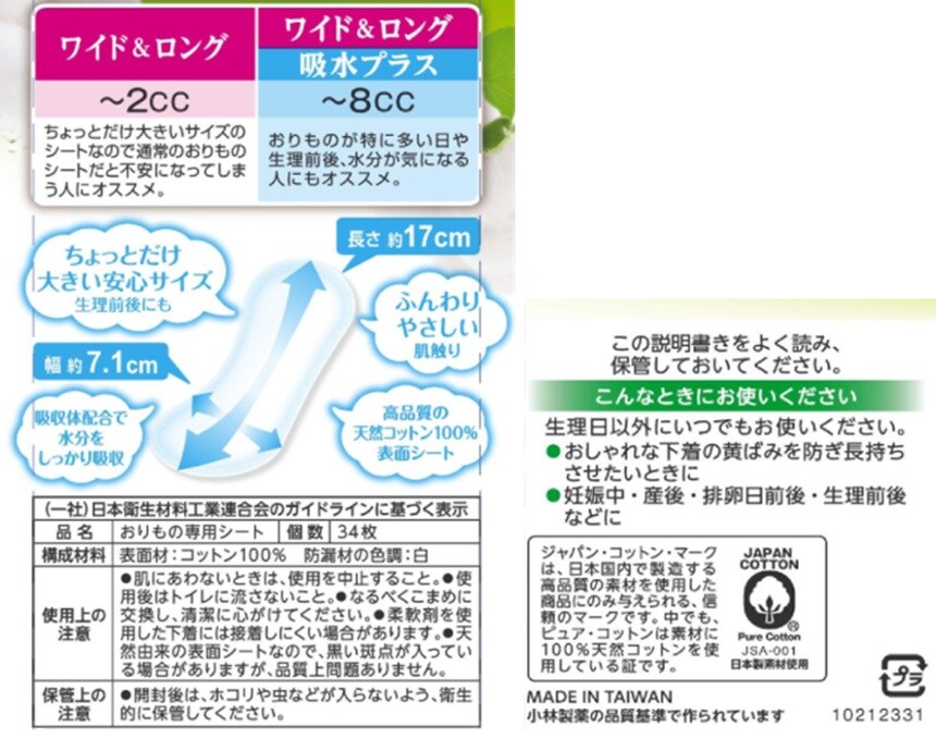 [計340枚]小林製薬 サラサーティコットン100 ワイド&ロング吸水プラス 34枚入×10個 | ”ちょっとだけ大きい”安心サイズのおりものシート