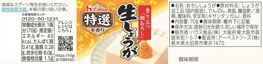 シャキシャキの繊維感と、しょうがのおろしたてのような生風味が楽しめる「粗おろし仕立て」です。