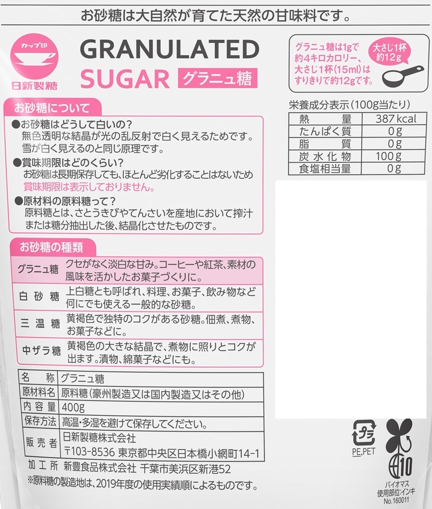 グラニュ糖は香りを楽しむコーヒーや紅茶、素材の風味を生かしたお料理やお菓子作りなどに使用。