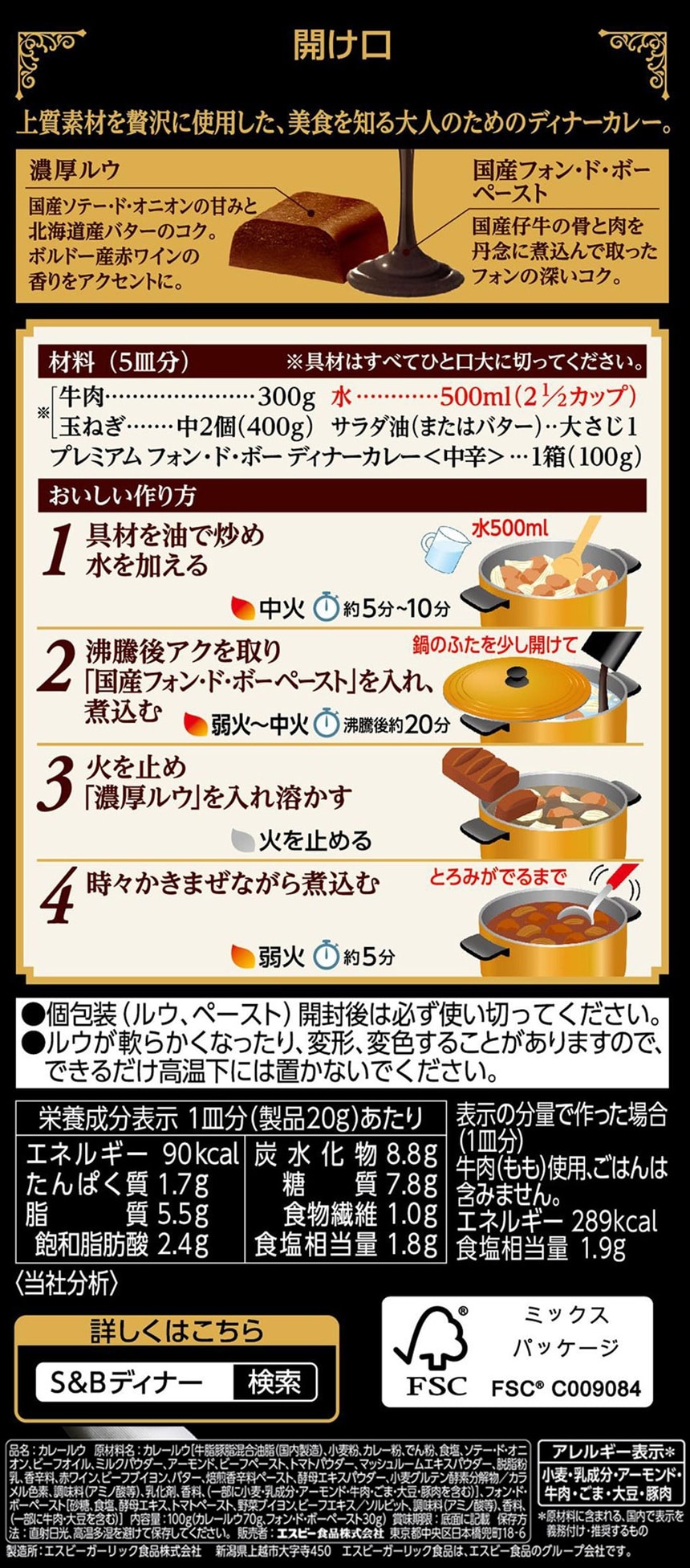 - プレミアムフォン・ド・ボー ディナーカレー 中辛 100g
