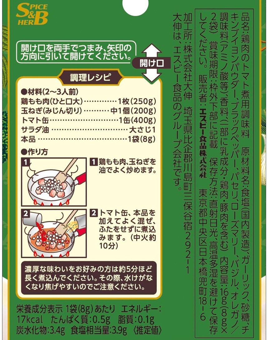 - S&B シーズニング 鶏肉のトマト煮 16g(8g×2袋入)