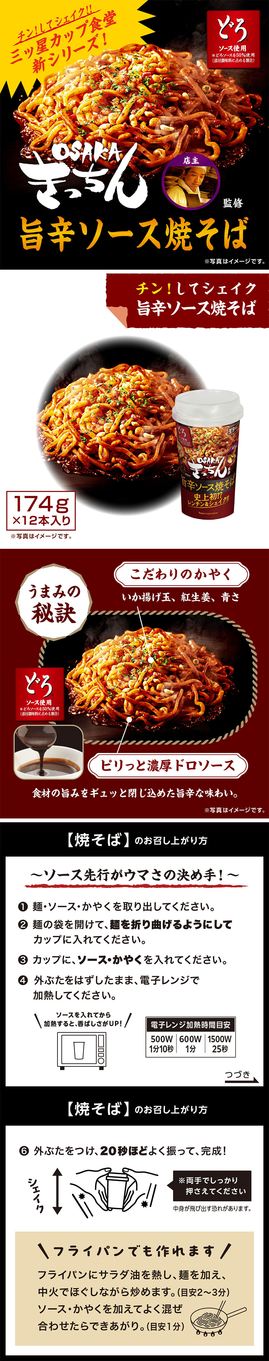 細長いカップから 麺、ソース、ふりかけの各袋を取り出し、カップに生麺を戻しソース、ふりかけをかけて 1分ほどチンした後数回ふる…そのままか器に移して食す