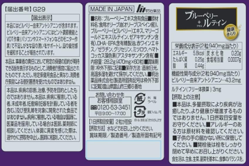 - 【機能性表示食品】ブルーベリー+ルテイン 60粒入