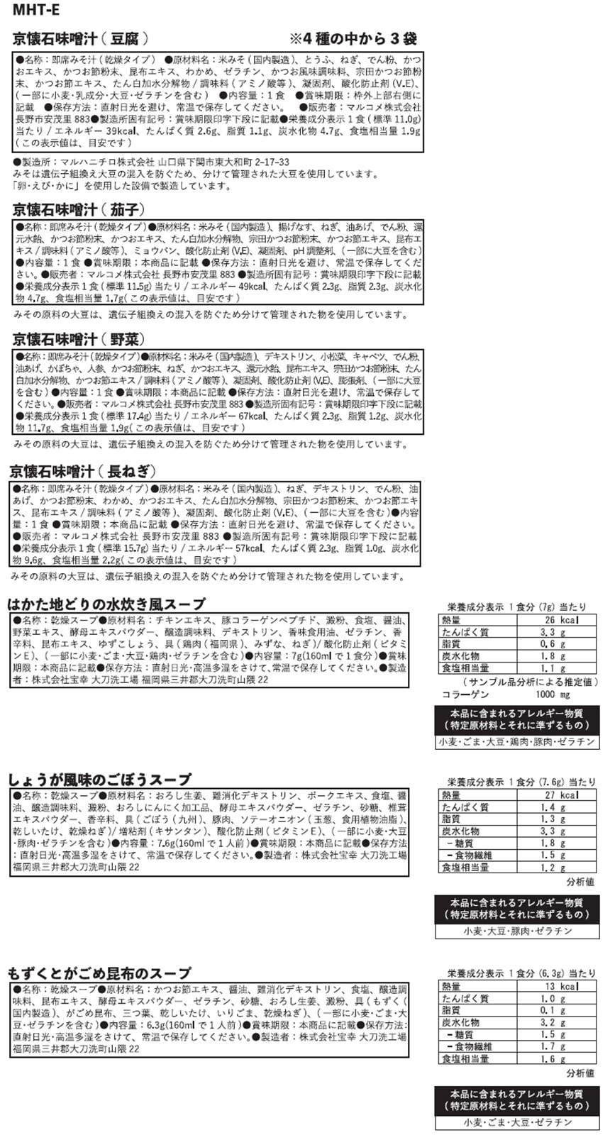※宝幸フリーズドライスープは、水炊き風スープ、ごぼうスープ、もずくのスープが各2袋+ランダムでいずれか2袋が入っています。