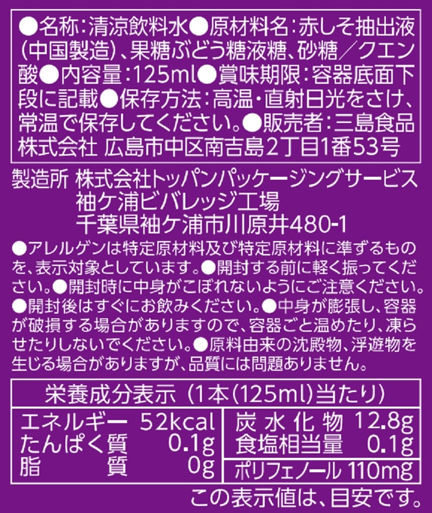 [90本]三島食品 赤しそ飲料 ゆかりⓇ 125ml | 赤しその爽やかな香りと、ほどよい酸味ですっきりとしたのどごしをお楽しみいただけます。