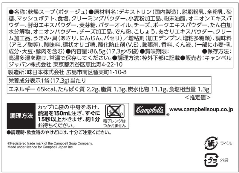 [計25食]キャンベルジャパン インスタントドライスープ クラムチャウダー 5食入×5個 | いつでも簡単に本格的なクラムチャウダーが楽しめます。
