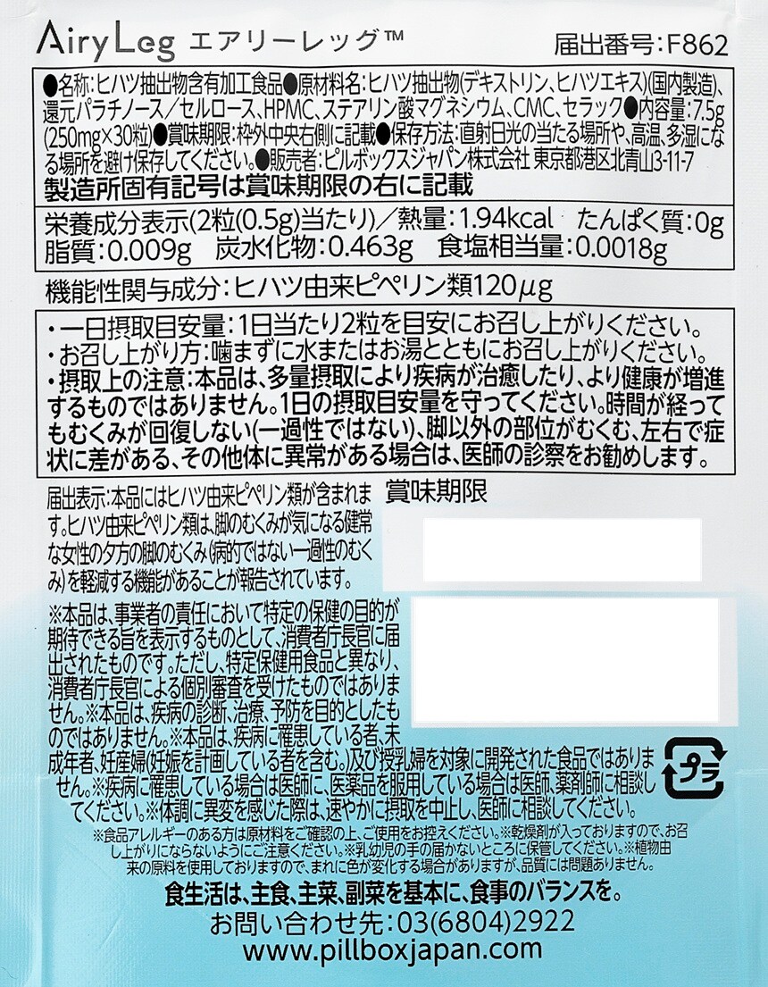- 【機能性表示食品】Airy Leg 30粒入