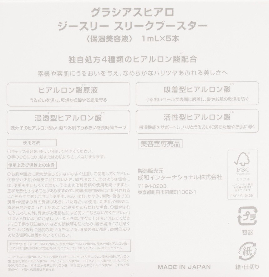 [24個]成和インターナショナル グラシアスヒアロ ジースリー スリークブースター 1mL×5本 | 4種類のヒアルロン酸配合の高機能ブースター美容液で髪・素肌にリッチなうるおいを!