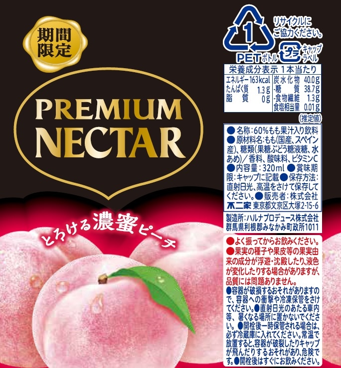 - 不二家プレミアムネクターとろける濃蜜ピーチPET 320ml