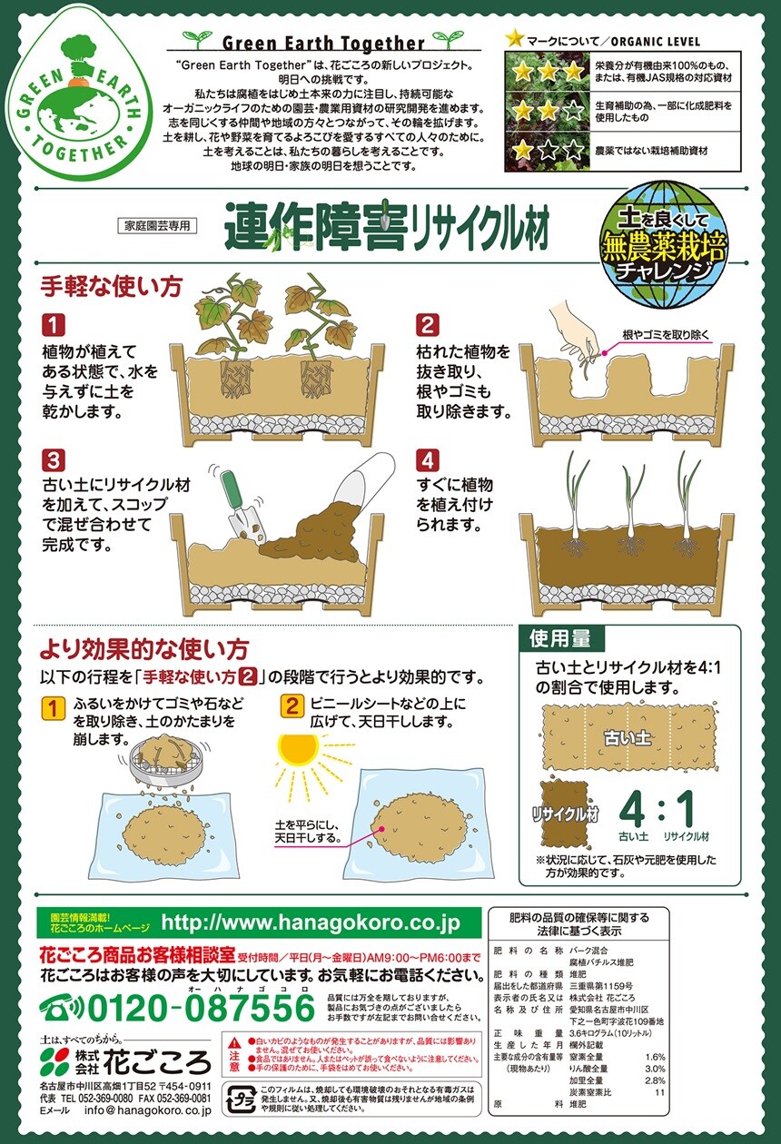 - 花ごころ GREEN EARTH TOGETHER 連作障害リサイクル材 10L