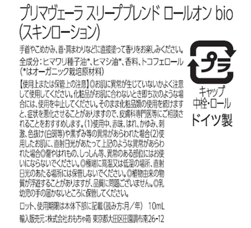 [6本]おもちゃ箱 プリマヴェーラ ロールオン bio スリープブレンド 10ml (試供品) | ドイツNo.1オーガニックアロマ・スキンケアブランド
