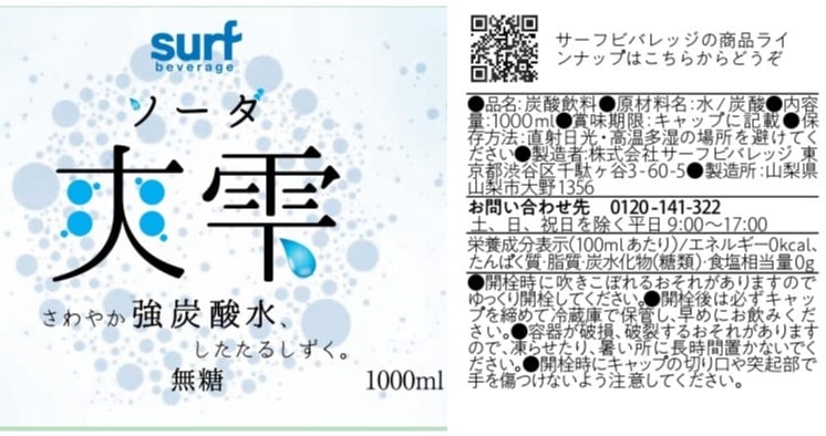 30年以上にわたりナチュラルミネラルウォーターを製造してきたサーフビバレッジが作る国産炭酸水。