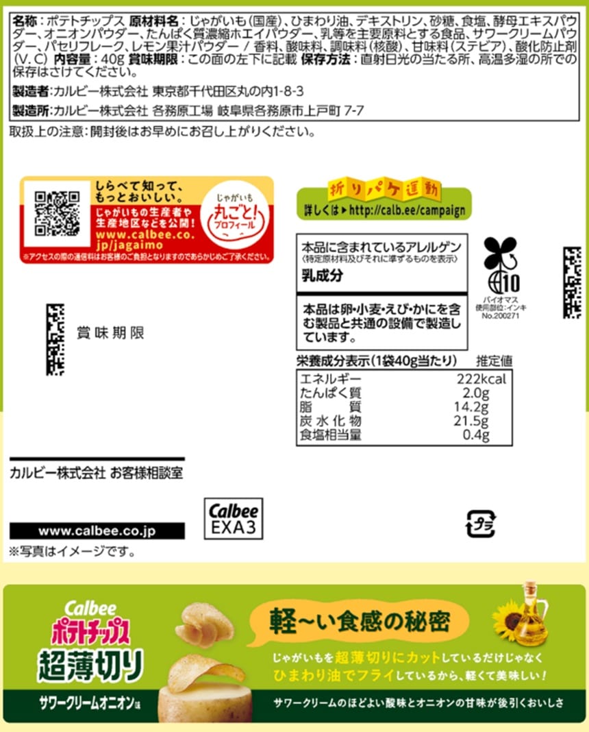- カルビー ポテトチップス 超薄切り サワークリームオニオン 40g
