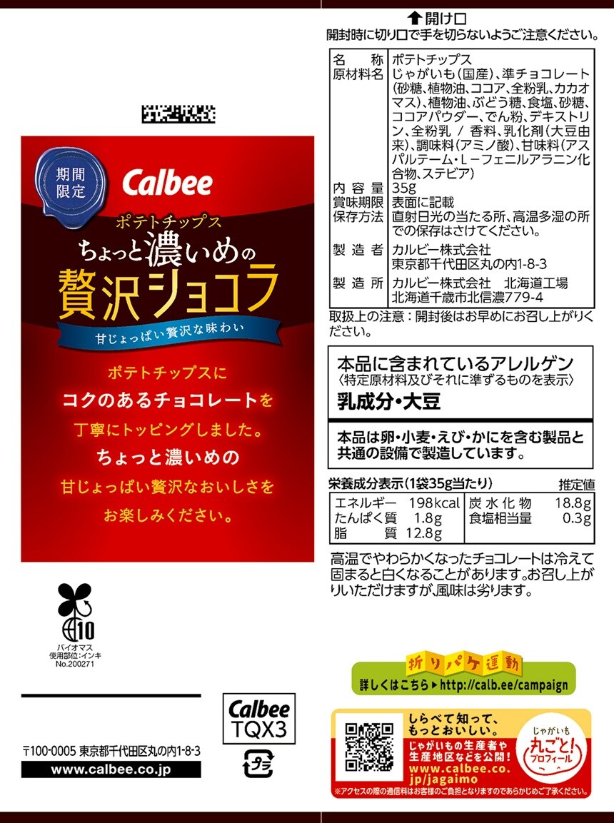 通常の「ポテトチップス 贅沢ショコラ」よりちょっと濃いめのチョコレートの味わいを感じられます。