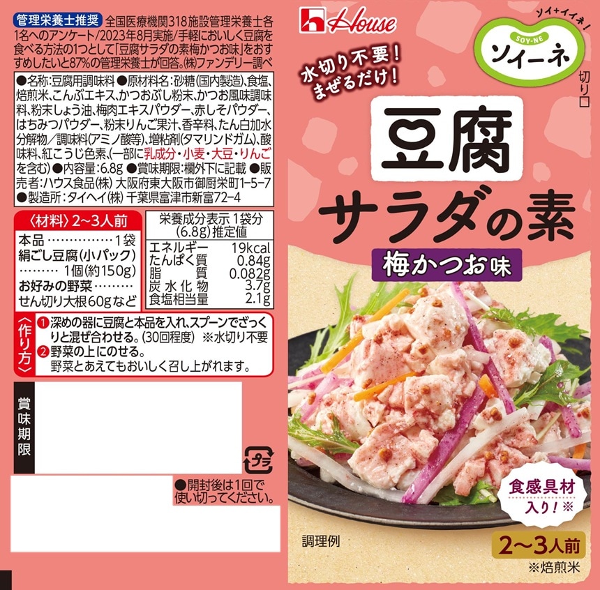 ・ソイーネ 豆腐サラダの素 梅かつお味 6.8g×8袋