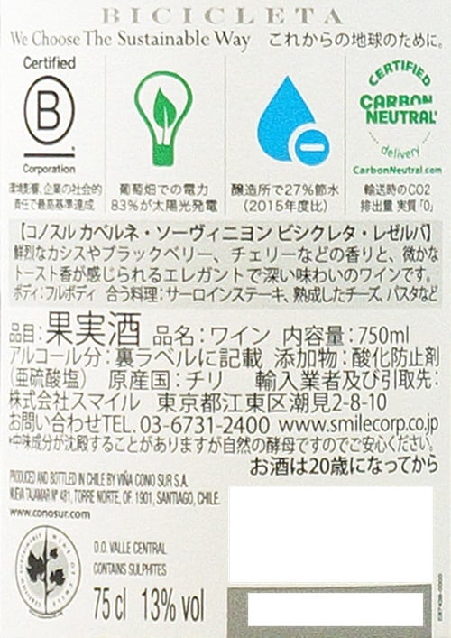 【コノスル カベルネ・ソーヴィニヨン ビシクレタ・レゼルバ】