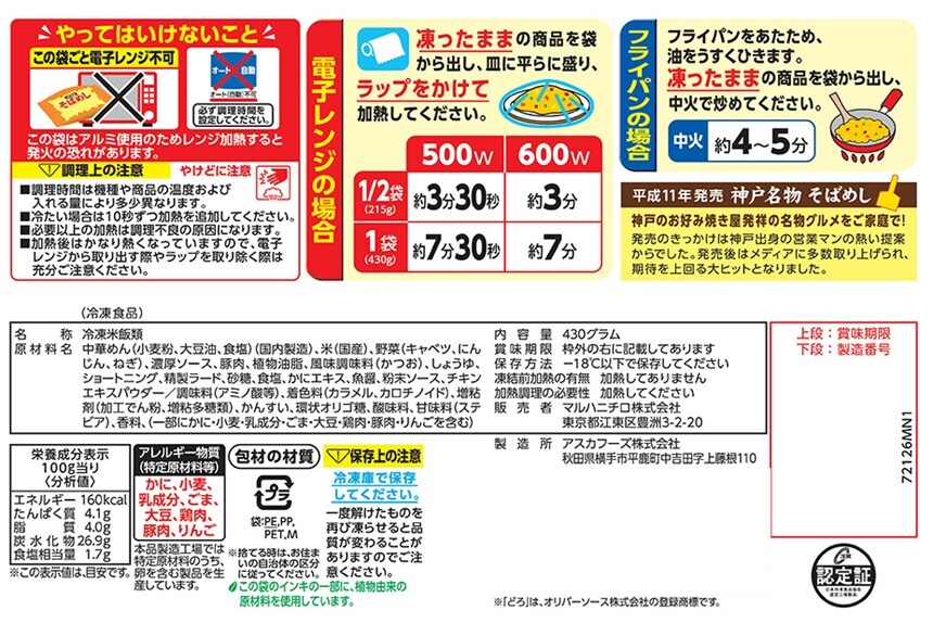 - [冷凍]マルハニチロ 神戸名物そばめし 430g×12個