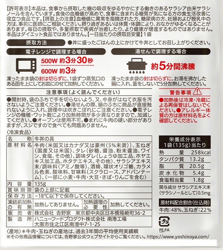 - [冷凍]吉野家 トク牛 135g×5個 【特定保健用食品】