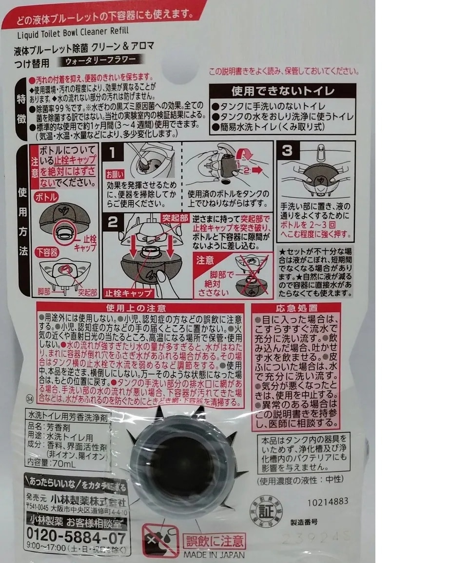 - 液体ブルーレット除菌 CLEAN&AROMA ウォータリーフラワー つけ替用 70ml